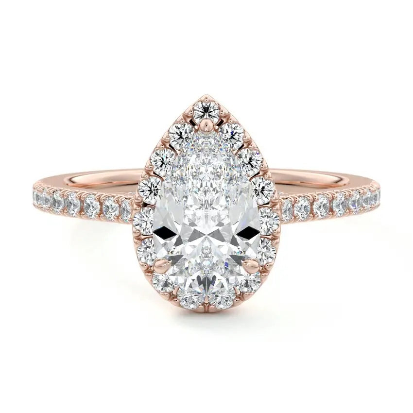 Whether you're planning a proposal or looking for a meaningful gift, our Pear-Cut Halo Moissanite Engagement Ring with Pave is the perfect choice. Its timeless design ensures it will be cherished for generations.