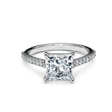 Princess-Cut Moissanite Engagement Ring with Pave Band