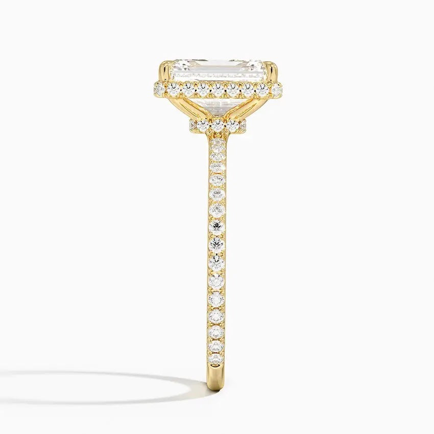 Whether planning a proposal or looking for a meaningful gift, the Emerald Cut Engagement Ring with Pave Band and Double Hidden Halo by ApolloGem is the ideal choice. Its timeless design ensures it will be cherished for generations.