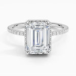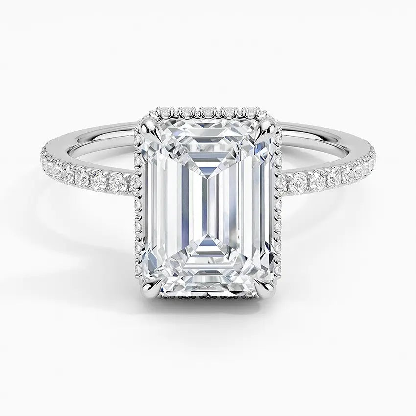 Emerald Cut Hidden Halo Double Hidden Moissanite Engagement Ring with Pave Band – ApolloGem