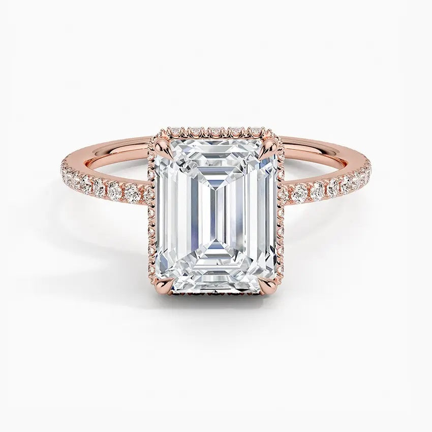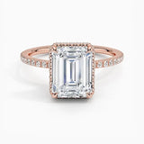 Emerald Cut Hidden Halo Double Hidden Moissanite Engagement Ring with Pave Band