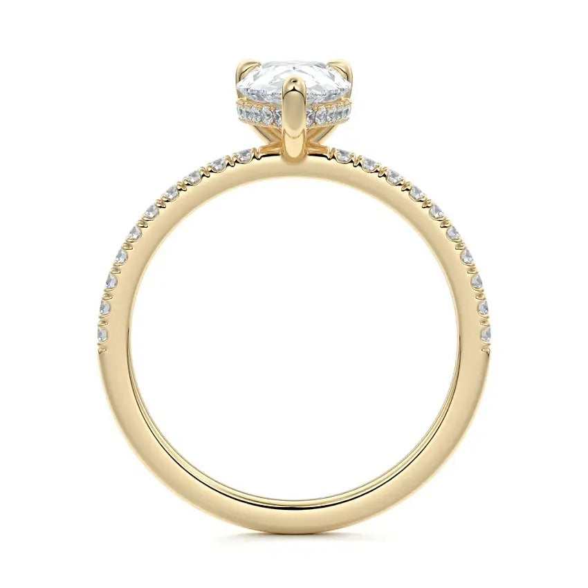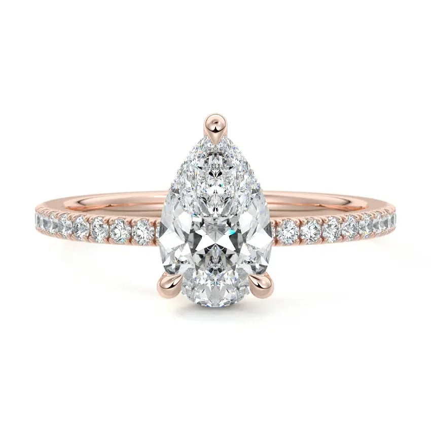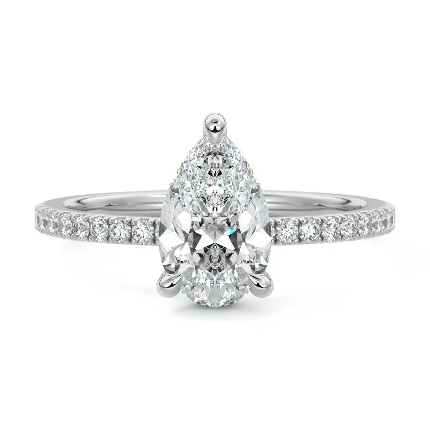 Pear Cut Engagement Ring with Pave Band and Hidden Halo – ApolloGem