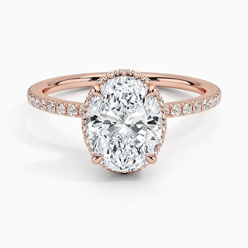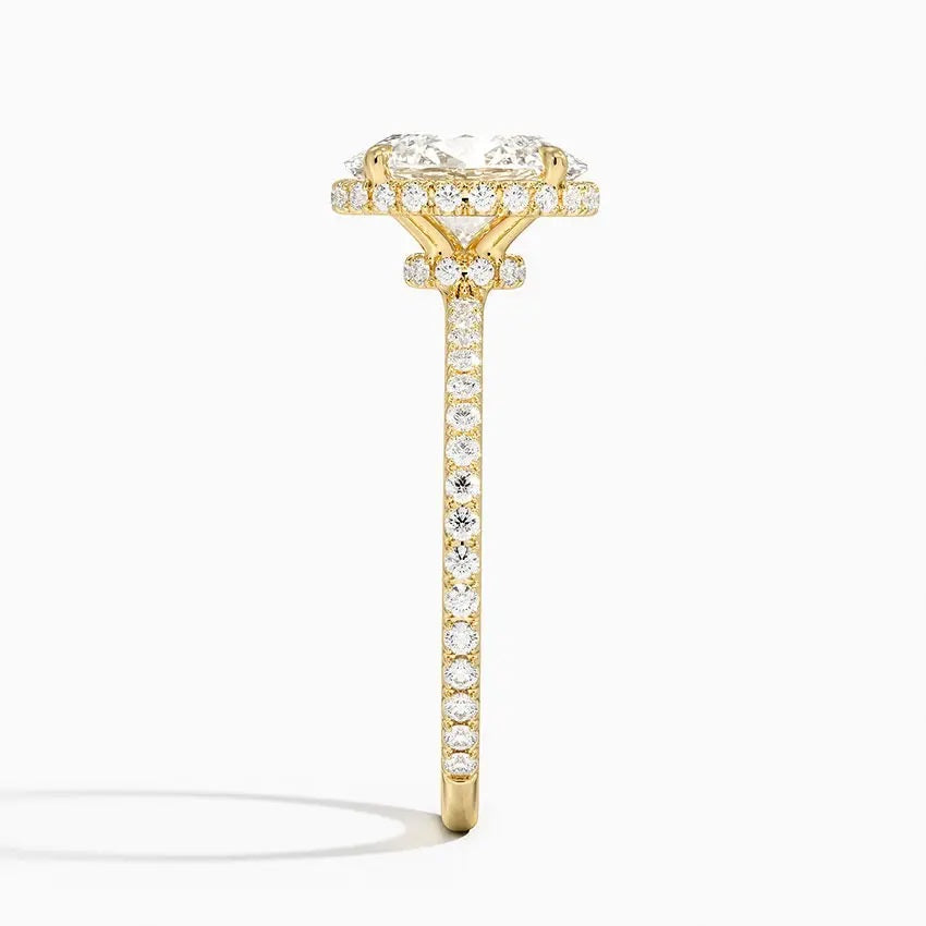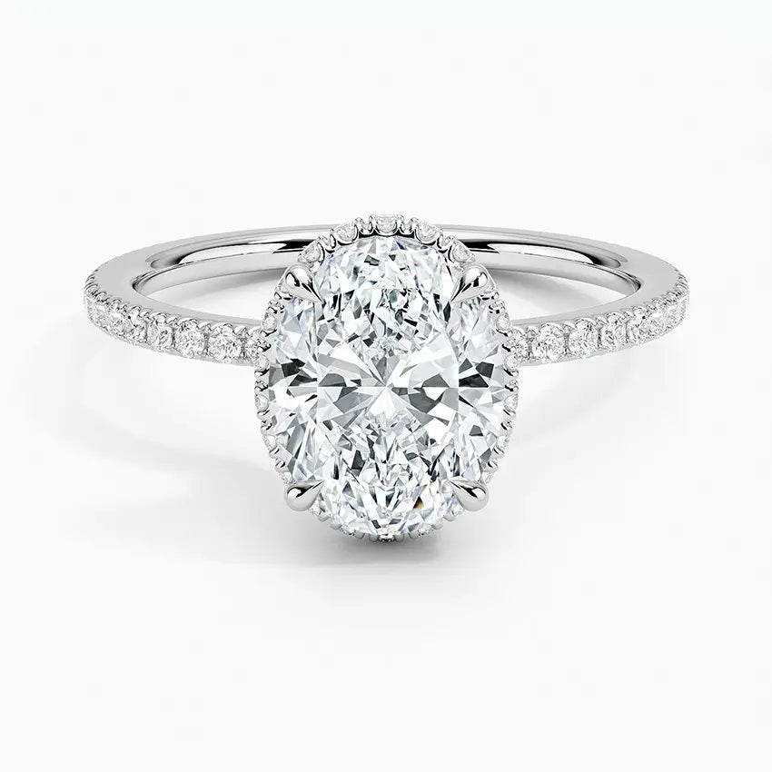 Oval-Cut Hidden Halo Double Hidden Moissanite Engagement Ring with Pave Band and Hidden Halo – ApolloGem