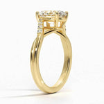 Twisted Pave Band: The twisted band features intricate patterns of small moissanite stones set in a pave style, creating a dazzling visual impact and enhancing the overall radiance of the ring.