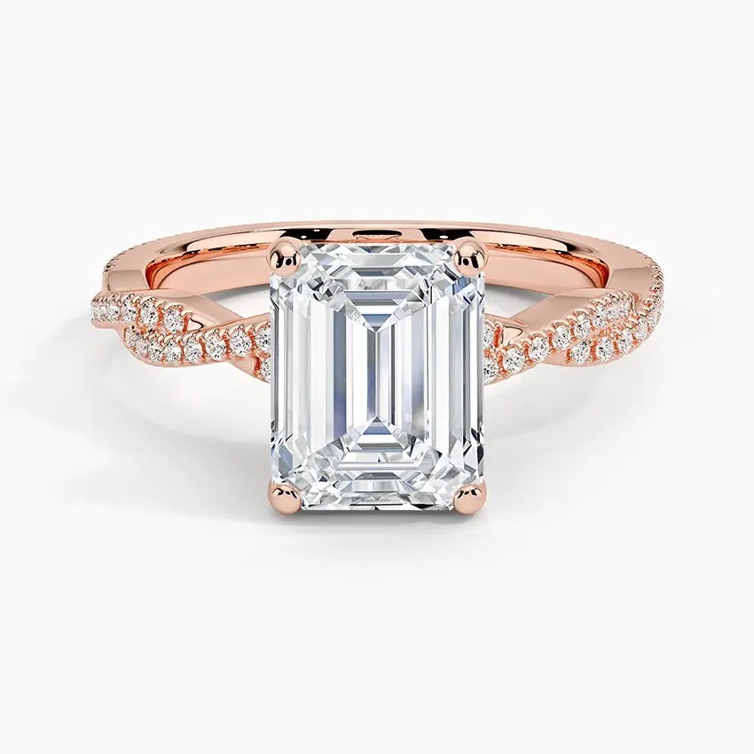 Emerald Cut Twisted Pave Engagement Ring – ApolloGem