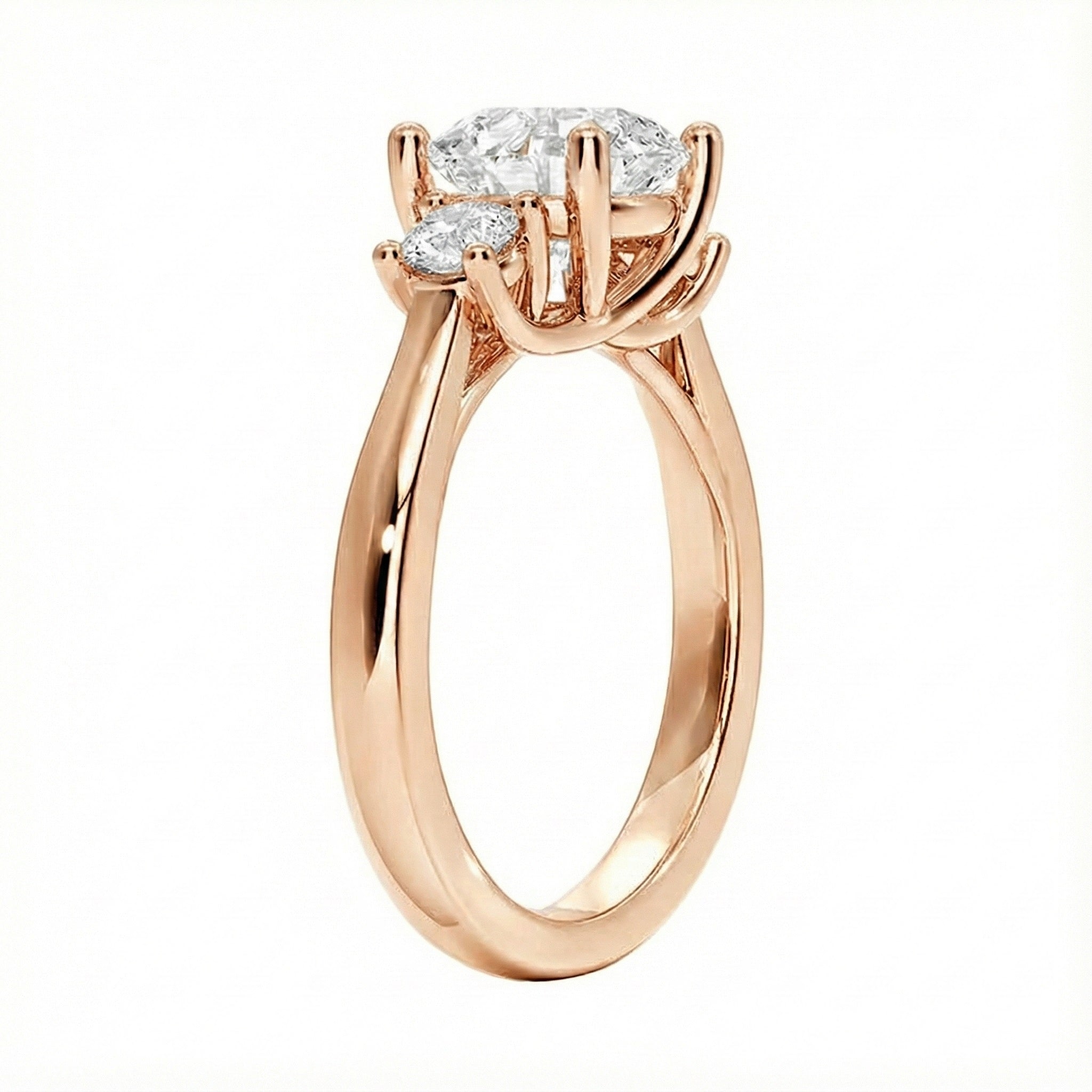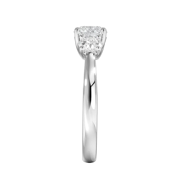 Perfectly Balanced Proportions: We strictly adhere to the ideal aesthetic ratios. As you upgrade your center stone size, we automatically scale the side stones to ensure a harmonious and luxurious look (see specs above).