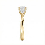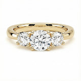 Made from premium gold, this Round Trilogy ring maximizes light return, creating a dazzling display of fire and brilliance that can be seen from across the room.