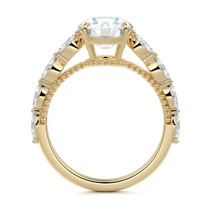 Whether you're planning a proposal or looking for a meaningful gift, our Round-Cut Moissanite Diamond Pave ring with side marquise diamonds is the ideal choice. Its timeless design ensures it will be a cherished piece for generations to come.