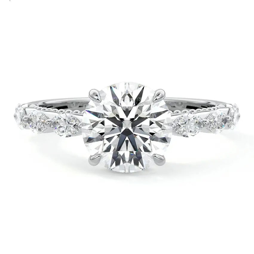 Round Cut Moissanite Diamond Pave Perfect For Engagements Side Marquise Diamond