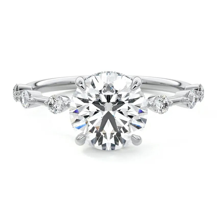 Hidden Halo: The Hidden halo design adds a touch of surprise and additional brilliance, with small Moissanite stones set underneath the central stone, ensuring the light is captured from all angles.