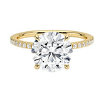 Celebrate your commitment with our timeless Fashion Round Cut Hidden Halo Moissanite Engagement Ring with Pave Band. Expertly crafted by ApolloGem, this elegant ring epitomizes sophistication and style, making it the perfect symbol of your enduring love.