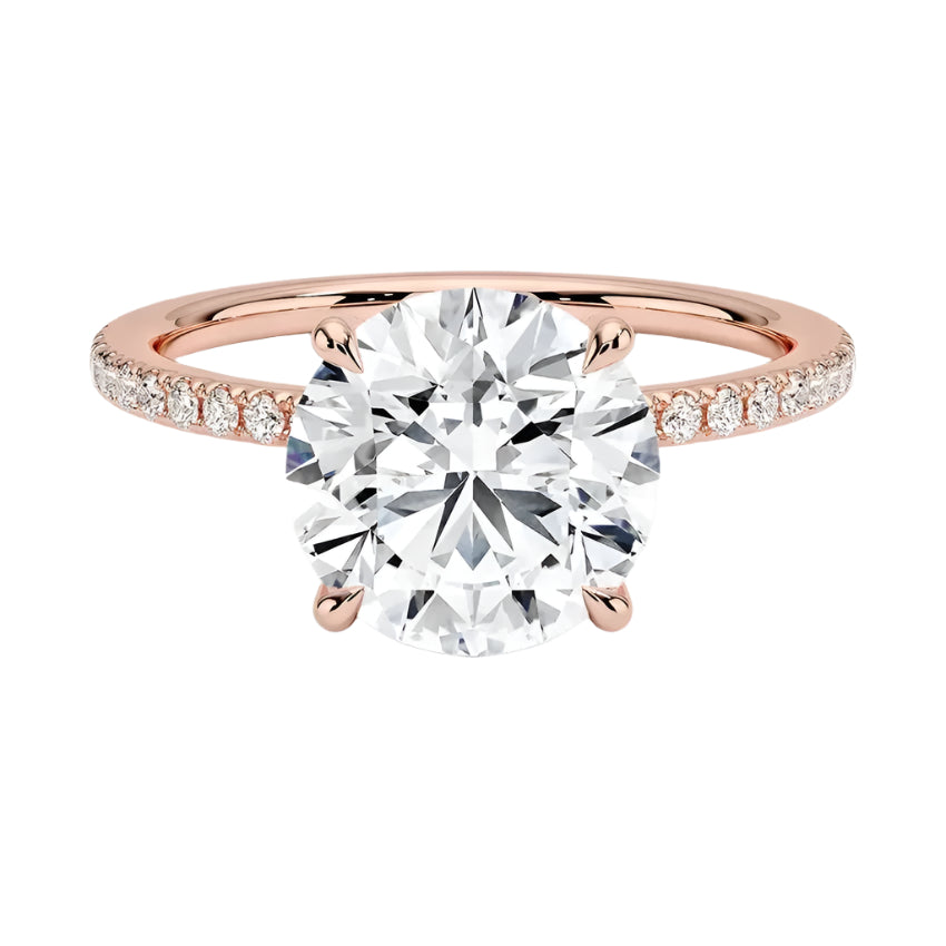 Fashion Round Cut Hidden Halo Moissanite Engagement Ring with Pave Band – ApolloGem