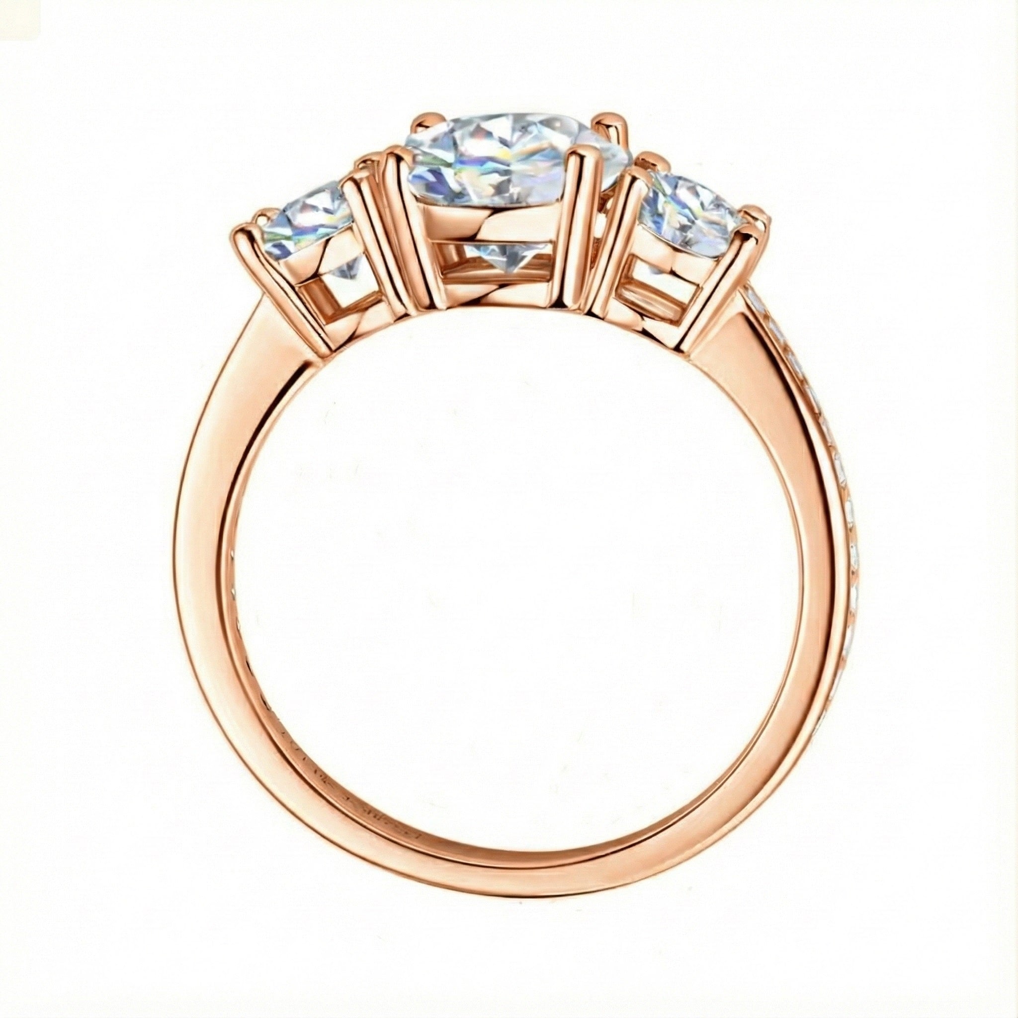 Round Cut Moissanite Trilogy Engagement Ring with Channel Set– ApolloGem