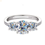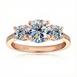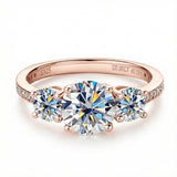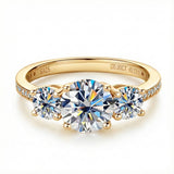 Experience unmatched sparkle with our Round Cut Moissanite Trilogy Engagement Ring with Channel Set, featuring three perfectly matched round moissanites. Expertly crafted by ApolloGem, this ring is the ultimate symbol of romance. The "Three-Stone" design represents the past, present, and future of your love story, making it a deeply meaningful choice.