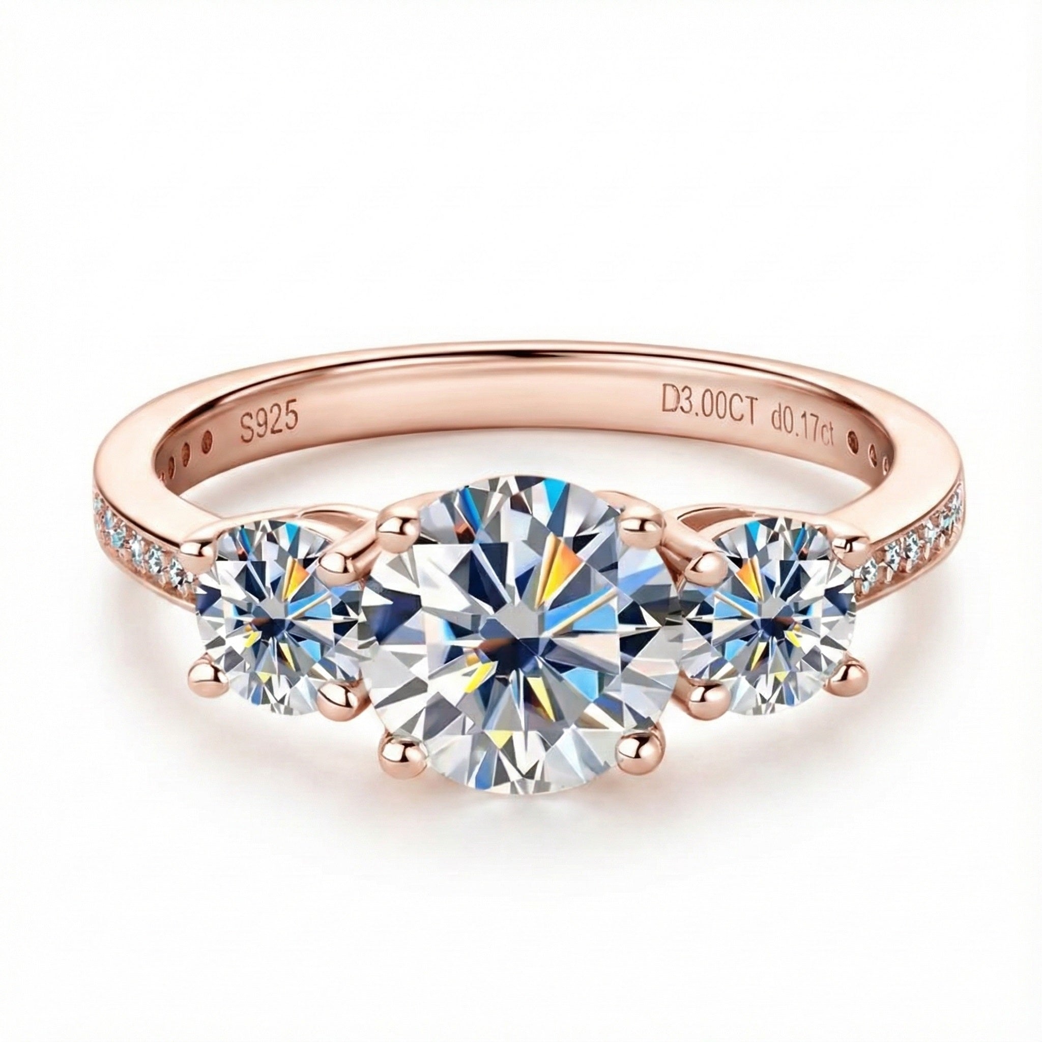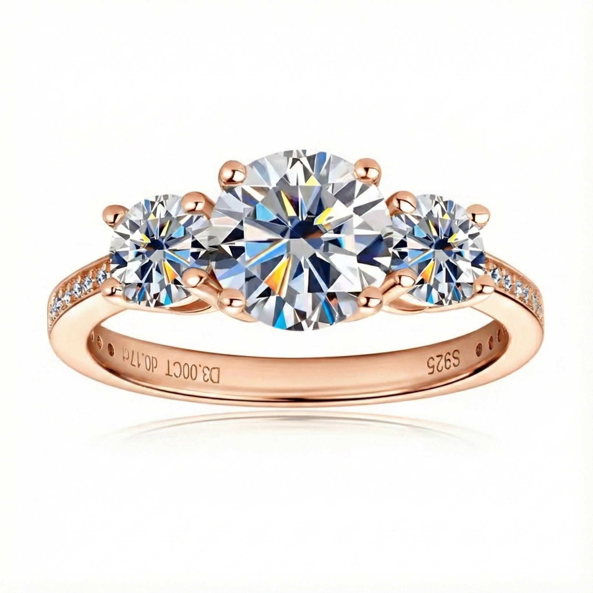 Unrivaled Brilliance: The Round Brilliant cut is engineered to reflect the most light. With 57 facets on each stone, this trilogy ring offers a continuous explosion of sparkle.