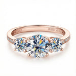 Made from premium gold, this Round Trilogy ring maximizes light return, creating a dazzling display of fire and brilliance that can be seen from across the room.
