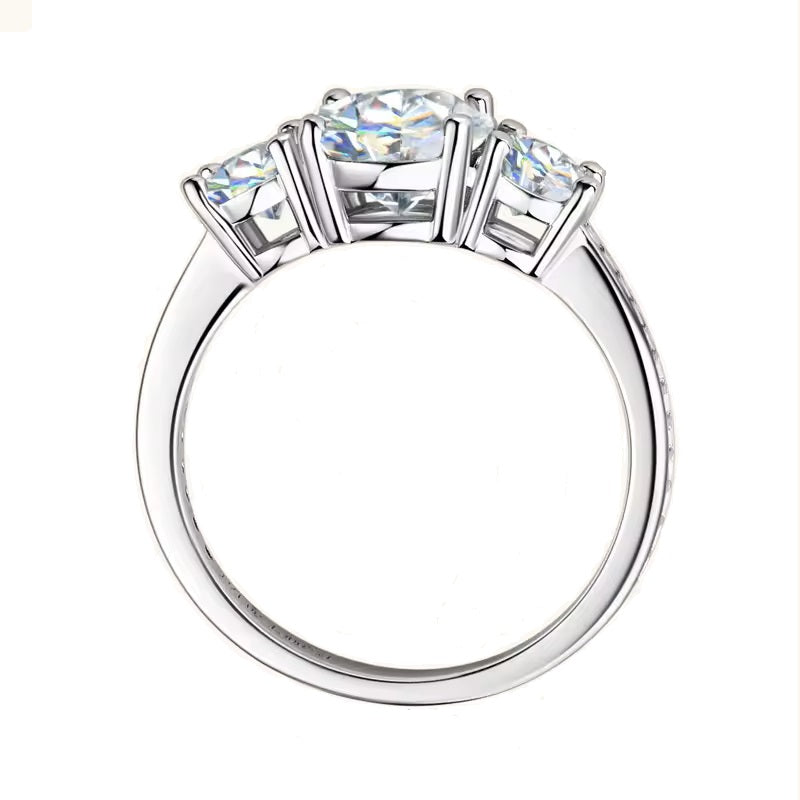 Round Cut Moissanite Trilogy Engagement Ring with Channel Set