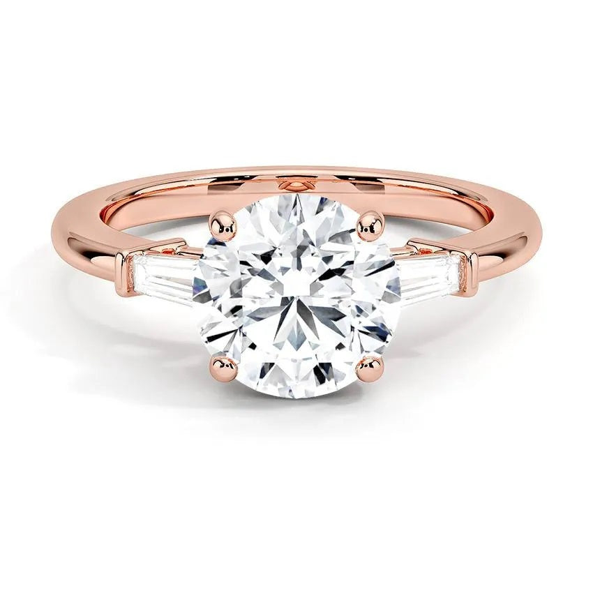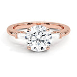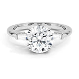 Elegant Side-Stone Engagement Ring with Round Center and Tapered Baguettes with 4-point Claw Setting – ApolloGem