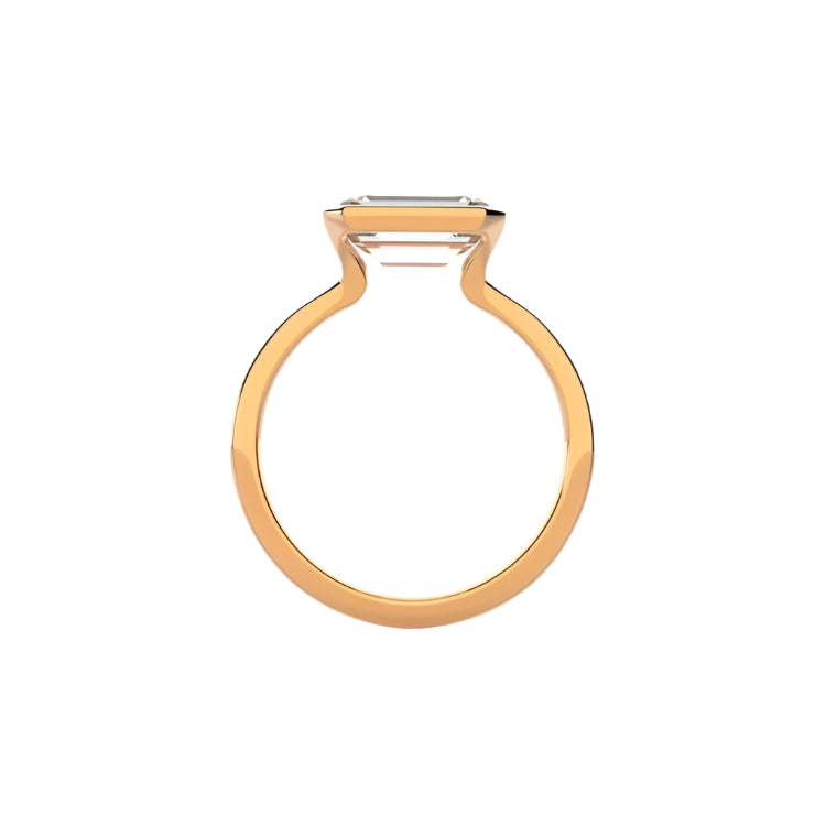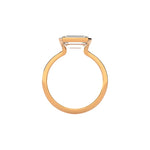 Emerald-Cut Moissanite: The centerpiece of this ring is an Emerald-cut moissanite, renowned for its exceptional brilliance and fire. The round cut enhances the stone's natural sparkle, making it a stunning focal point.