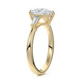 Tapered Baguette Side Stones: The tapered baguette side stones add a touch of classic beauty, enhancing the overall brilliance of the ring.