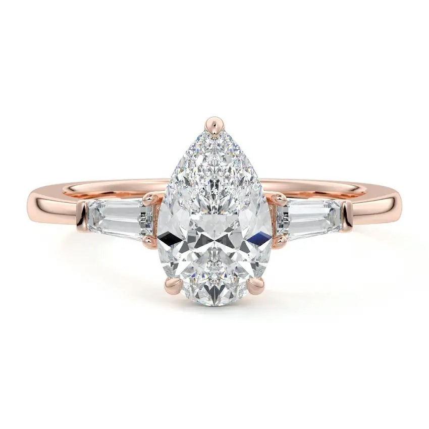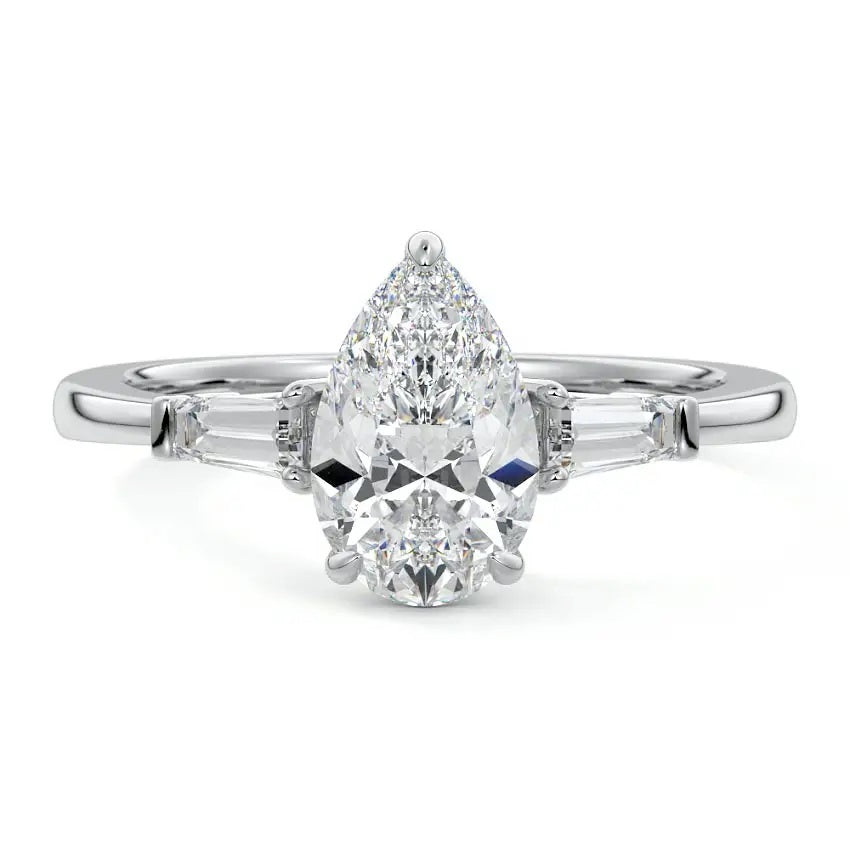 Pear-cut Engagement Ring with Elegant Tapered Baguettes - ApolloGem
