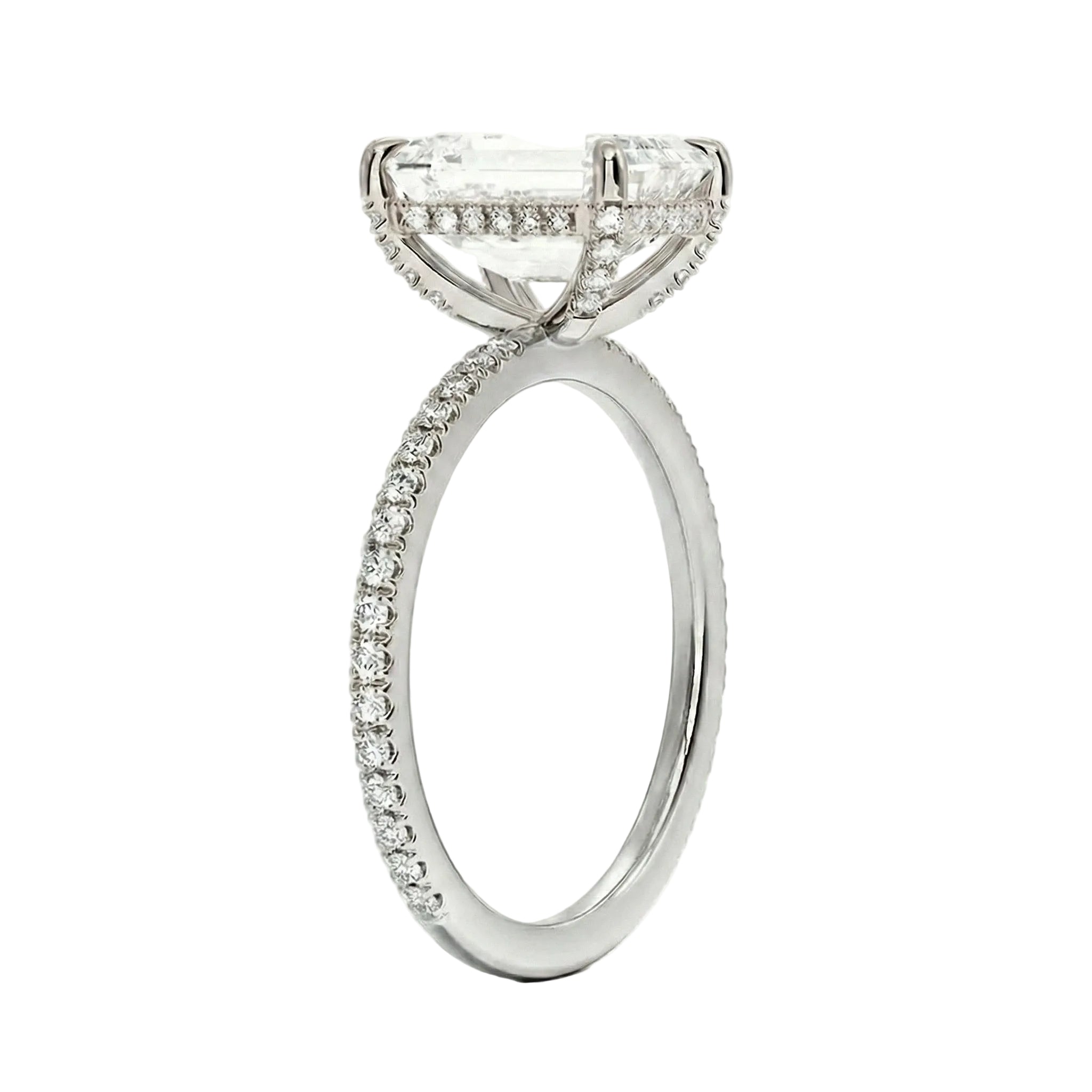 The Emerald Luxe – Hidden Halo & Pavé Moissanite Ring