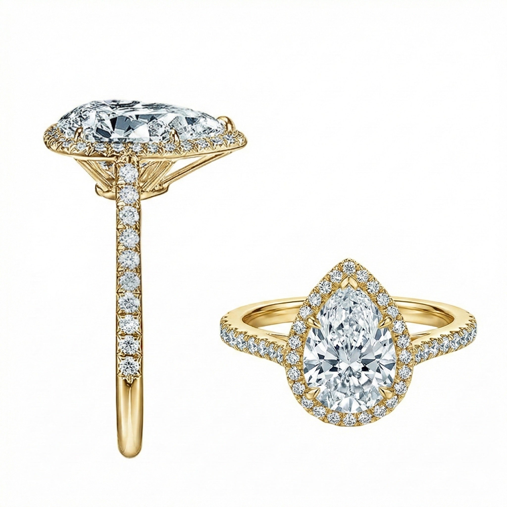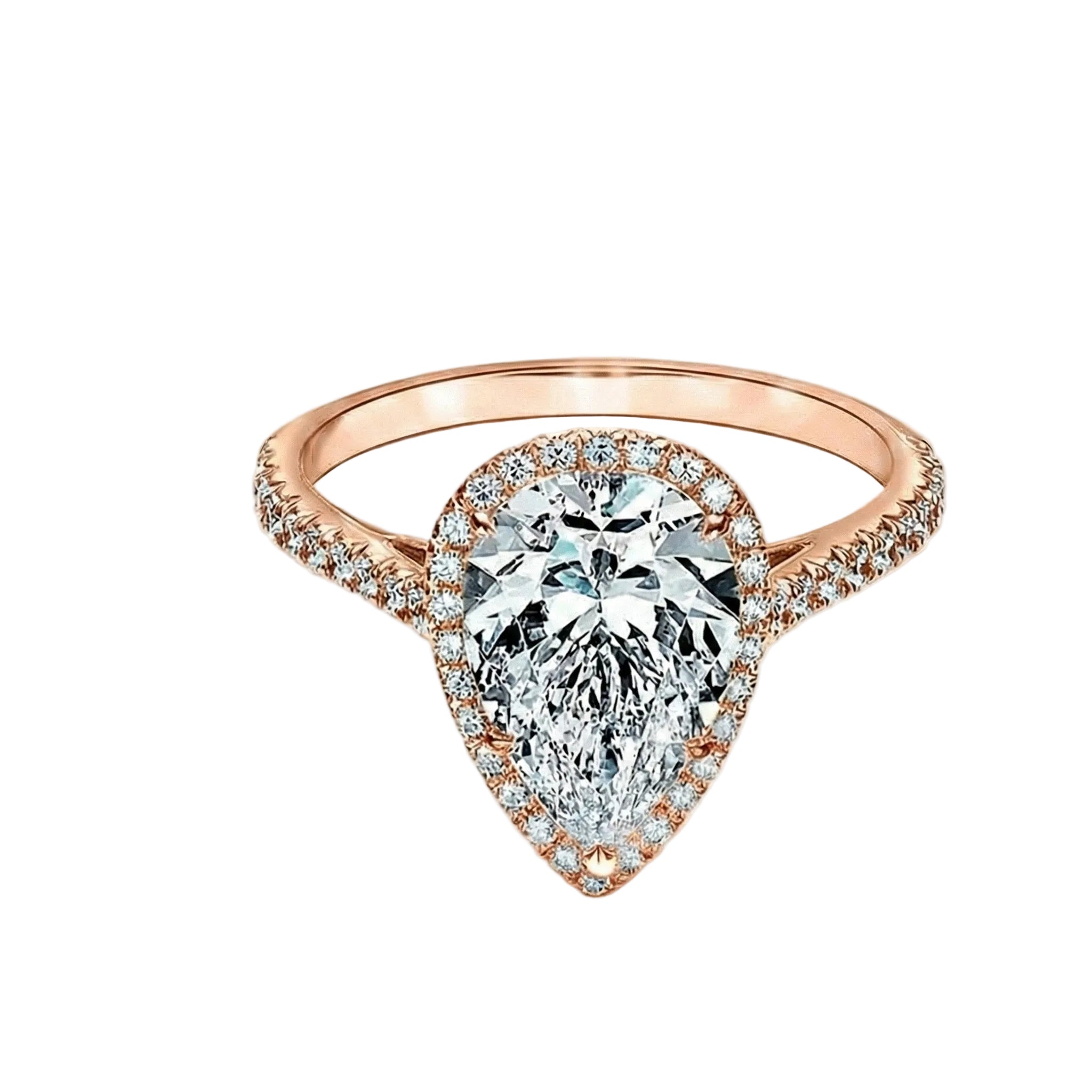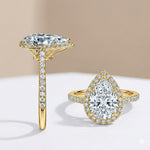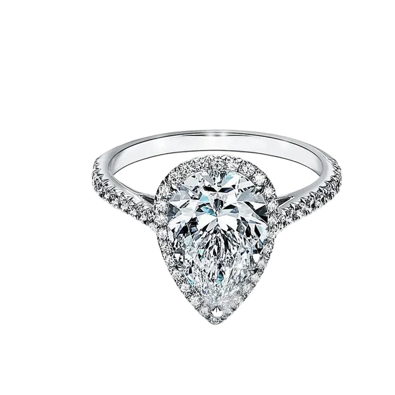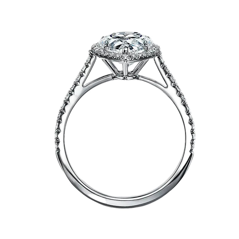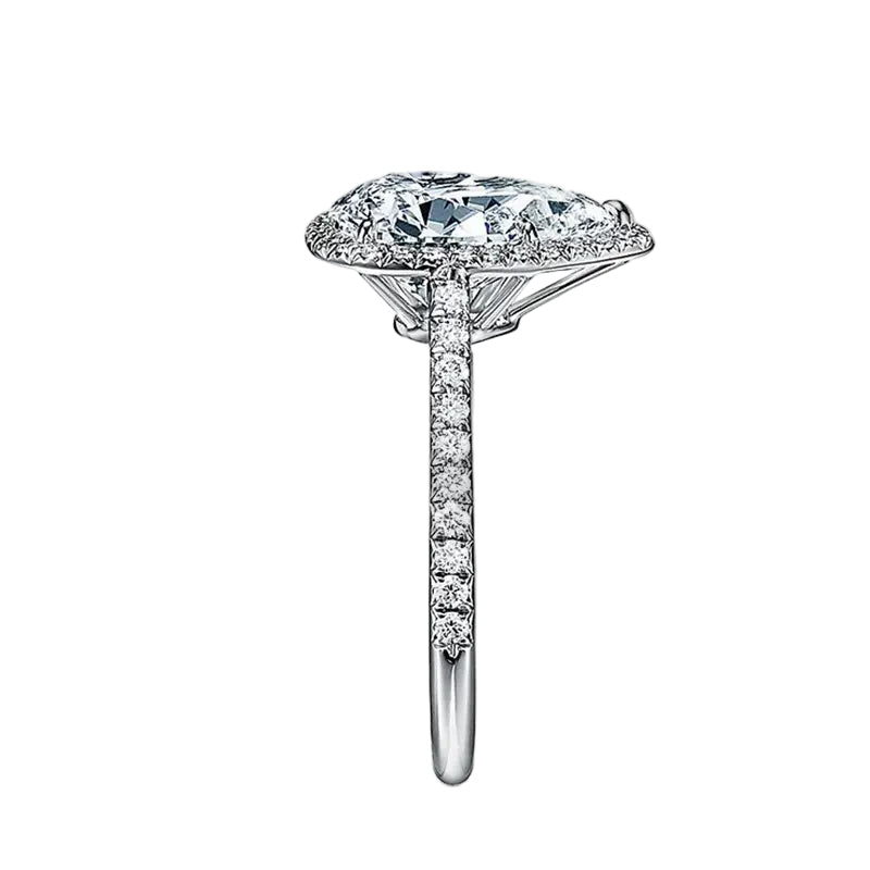 The Empress Pear – Halo Moissanite Ring with Pavé Band