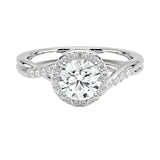 Luminous Halo: A circle of light embraces the center stone, making it appear larger and more brilliant than a standalone solitaire.