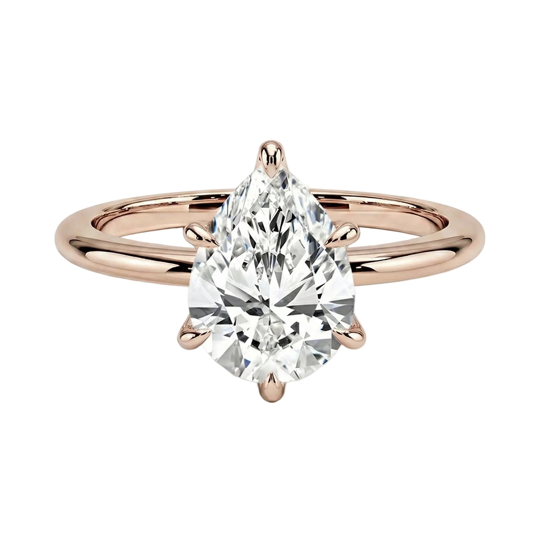 Description: Experience the pinnacle of sophisticated minimalism with The Pure Pear. This ring is a celebration of the iconic teardrop silhouette, featuring a single, magnificent pear-cut moissanite that captures light with unparalleled grace. The pear shape is uniquely celebrated for its ability to visually elongate the finger, offering a slender and majestic look.