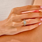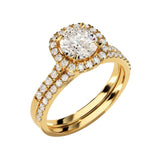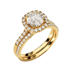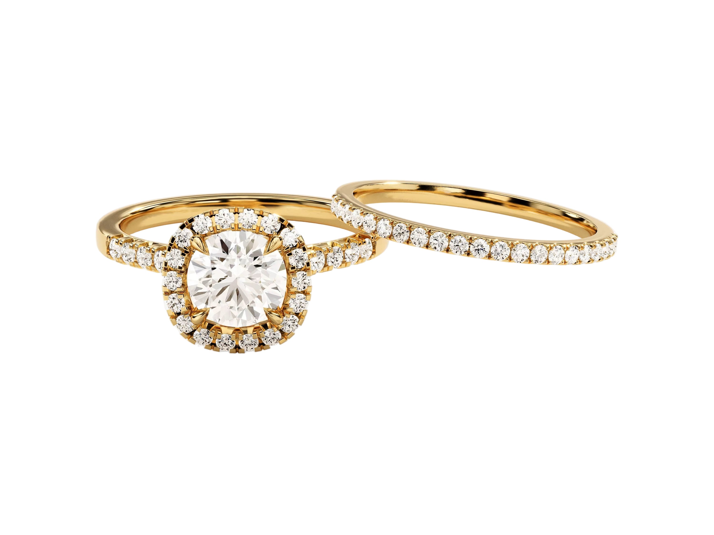 The Vintage Halo Moissanite Diamond Bridal Set with Straight Wedding Band is a timeless and elegant choice for those who appreciate classic beauty. This exquisite set features a vintage-inspired halo design with a stunning moissanite center stone, surrounded by smaller diamonds that enhance its brilliance. The straight wedding band complements the engagement ring perfectly, creating a harmonious and sophisticated look.