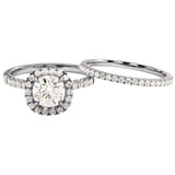 Vintage Halo Moissanite Diamond Bridal Set with Straight Wedding Band - ApolloGem
