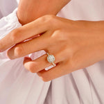 Vintage Halo Design: The vintage halo design adds a touch of classic beauty, with a stunning moissanite center stone surrounded by smaller diamonds.