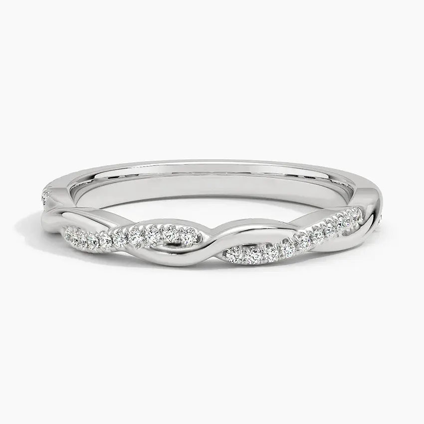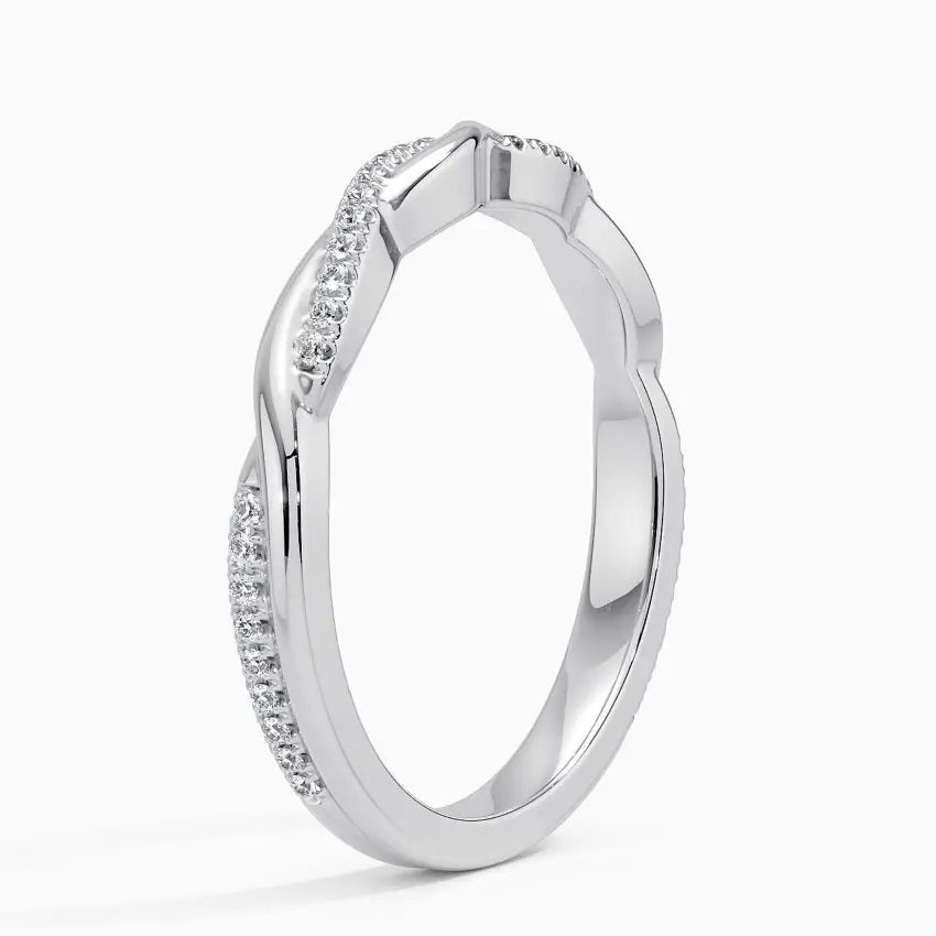 The Twisted Round-Cut Wedding Band is a beautiful choice for those who appreciate a blend of classic elegance and modern design. This exquisite band features a twisted design that adds a unique and contemporary touch, while the round-cut stones provide exceptional brilliance and sparkle.